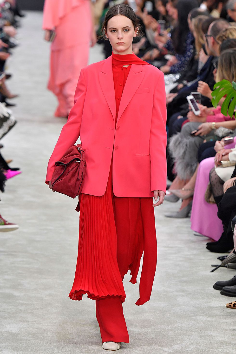 Roșu de Valentino completat cu un sacou oversized roz pe post de outwear